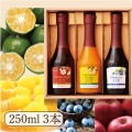 爽やかな酸味とほろ苦い柑橘の味わいがお楽しみいただける「シークヮーサーと八朔の酢」、酸味がやさしく飲みやすい「信州りんごの酢」、デザートビネガー第1号商品!酸味と甘みのバランスが良い「ブルーベリーの酢」を詰め合わせた250mlの3本セットです。
